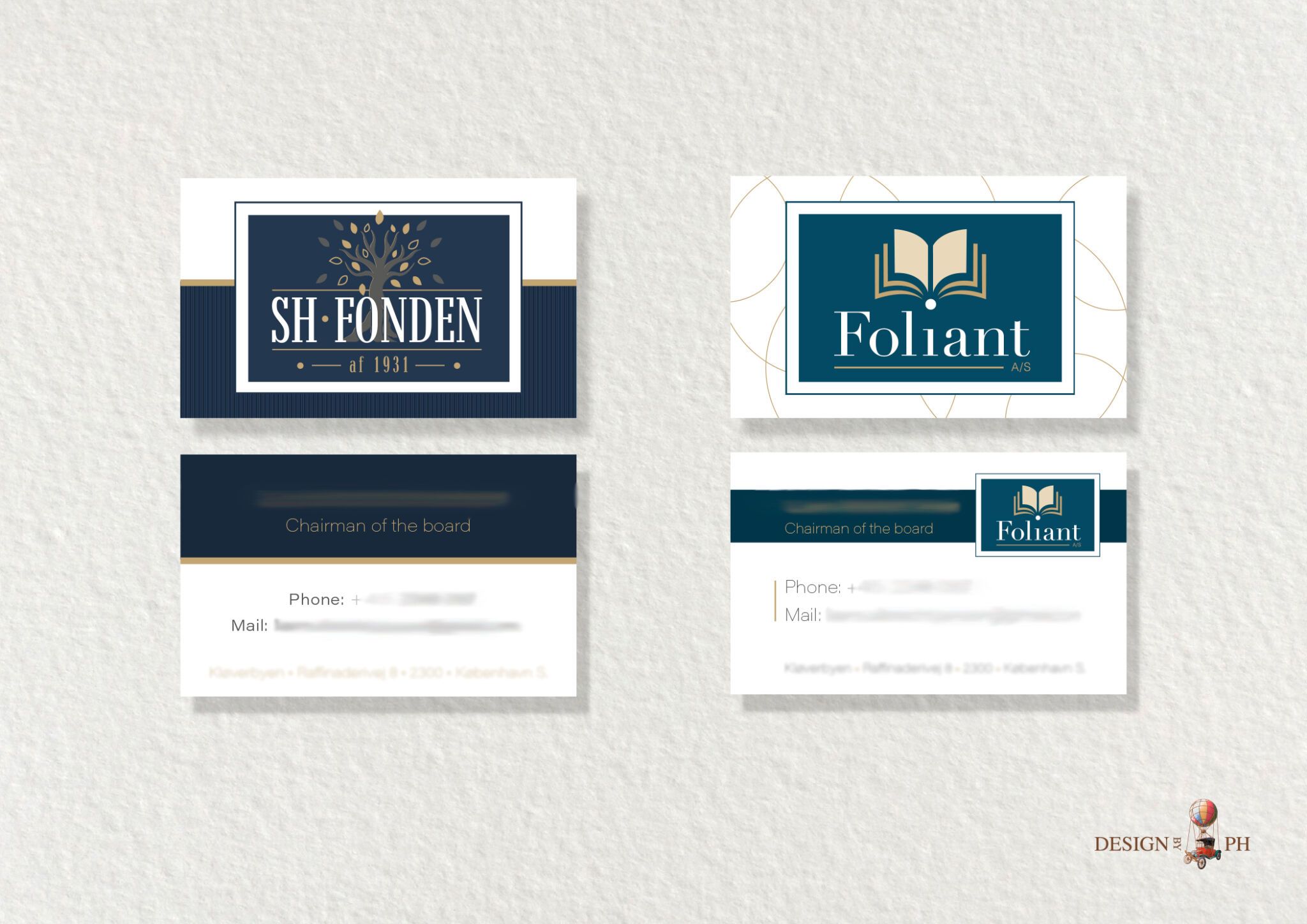 2 logodesign. Erhvervsdrivende fond, SH Fonden af 1931 samt investeringsselskabet, Foliant A/S.